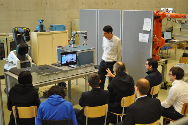 Link zum Youtube-Video: Robot programming by human motion (ULiège) Bei der ersten Robotix-Academy Roadshow am 14.02.17 in den Räumen der Université de Liège stellten die Projektpartner mithilfe interaktiver Demonstratoren die neuesten Anwendungen der industriellen Robotik vor. Thema der Roadshow war die „Demontage als Mensch-Roboter-Kollaboration“ (Umwelt-Campus Birkenfeld, UCB), die „Programmierung eines Roboters durch menschliche Bewegung“ (Université…
