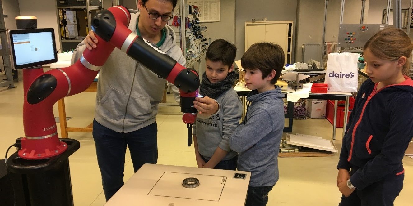 Deux élèves de primaire devaient faire un exposé sur la robotique dans le cadre de leur activité scolaire. Ils nous ont contactés pour organiser une visite pour le 23 janvier 2019. Ils ont pu alors poser des questions qu’ils avaient préparées à l’avance à l’équipe de recherche.