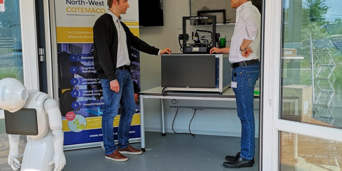 Les visiteurs du roadshow ont également eu l’occasion de découvrir et d’essayer les technologies d’Industrie 4.0 : A l’aide de différents démonstrateurs, l’équipe d’experts du Kompetenzzentrum a pu illustrer des scénarios d’application réels pour les entreprises intéressées, tels que la mise en réseau de production, l’interaction homme-technologie, les modèles économiques et le savoir-faire numérique.
