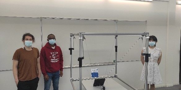 Le 22 juin 2021 trois élèves du master KIMP ont eu l’occasion de découvrir et de manipuler en binôme un robot à câbles développé dans le cadre du projet Interreg « Robotix-Academy » à l´ENIM.